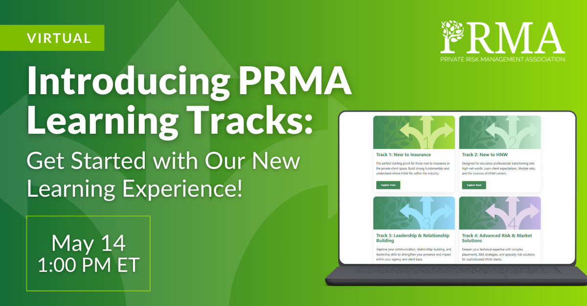 PRMA Learning Tracks are now live, offering structured, self-paced pathways through key topics in high-net-worth risk management. Join us for a guided walkthrough of PRMA Learning Tracks, where we’ll explore how the tracks are organized, what to expect, and how to get started.